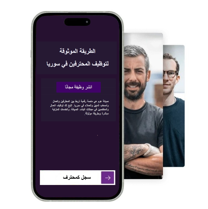 صيانة هوم هي منصة رقمية تربط بين المحترفين والعمال وأصحاب المهن والعملاء في سوريا. تتيح لك توظيف العمال والمختصين في مجالات البناء، الصيانة، والخدمات المنزلية مباشرة وبطريقة موثوقة.